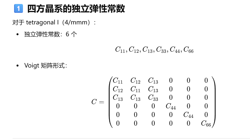 此外,也可以观察到,这些A矩阵中的每一行中,只有一个不为零的值,其实是因为我们的四方晶系比较简单,合适的应变模式选取让Cij之间完全解耦。